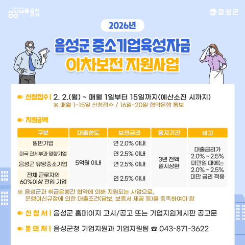 음성군, 2026년 중소기업육성자금 이차보전 지원사업 추진