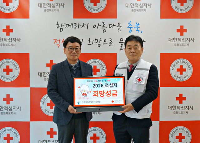 대한적십자사 충북지사(회장 장현봉)는 12월 26일(금), 임병렬 전 청주지방법원장으로부터 ‘2026년도 적십자 희망성금’을 전달받았다고 밝혔다.
