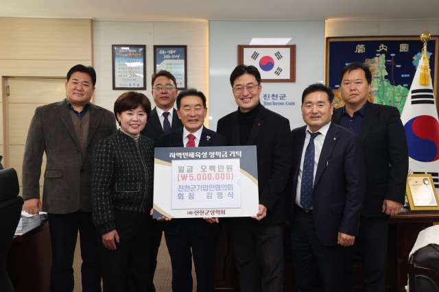 진천군기업인협의회 기탁식(오른쪽에서 세번째 김명식 회장)