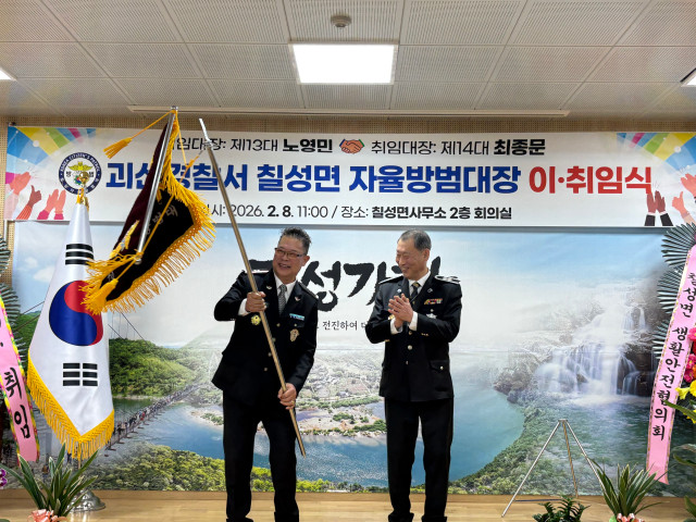 충북 괴산군 칠성면(면장 박진수)는 8일 칠성면사무소에서 칠성면 자율방범대장 이취임식을 진행했다고 밝혔다.
