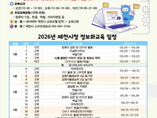 제천시는 시민들의 디지털 정보격차 해소와 미래 역량 강화를 위해 「2026년 시민 정보화교육」 전 과정을 무료로 운영한다고 밝혔다.
