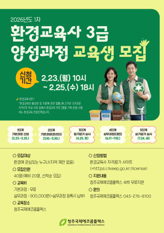 청주국제에코콤플렉스, 환경교육사 3급 양성과정 모집