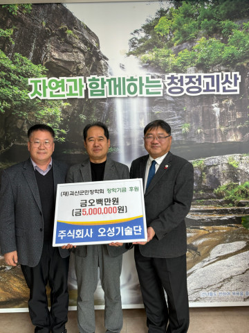 2025년 12월 16일 ㈜오성기술단(대표 곽현구)이 괴산군민장학회에 장학금 500만 원을 기탁했다